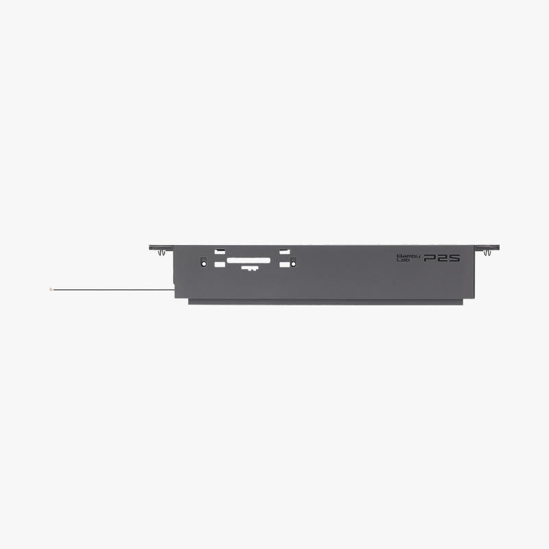 The front cover of the P2S printer is a dark grey panel installed on the front of the printer, with the model number "P2S" printed on it.